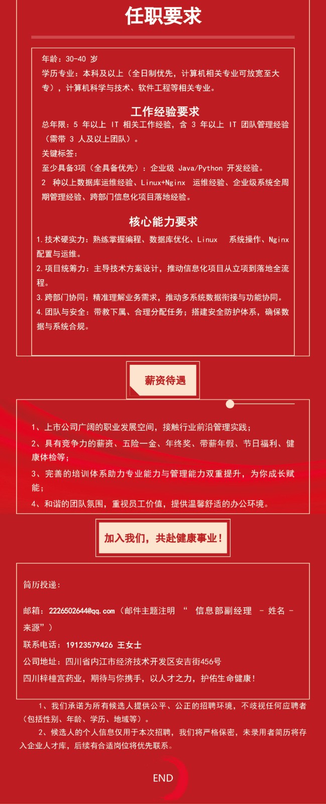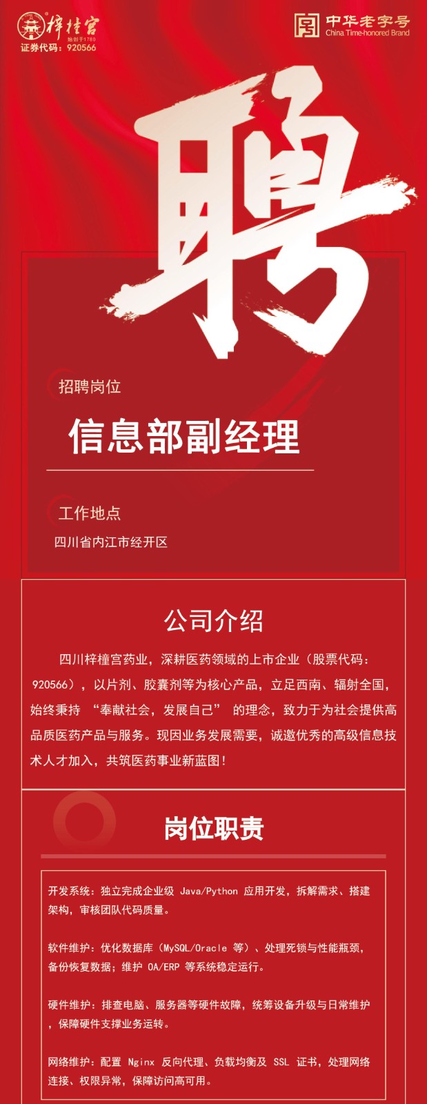 梓橦宮藥業(yè)聘請高級人才