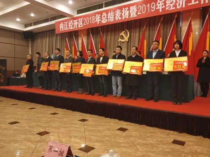 02 19-022月1日上午,內(nèi)江經(jīng)開區(qū)2018年總結(jié)表?yè)P(yáng)暨2019年經(jīng)濟(jì)工作會(huì)議在飄香園會(huì)議中心牡丹廳隆重召開。會(huì)議表?yè)P(yáng)了2018年創(chuàng)新發(fā)展先進(jìn)企業(yè)、稅收貢獻(xiàn)獎(jiǎng)、新進(jìn)“四上企業(yè)”、招商引資誠(chéng)信企業(yè)、“人才特區(qū)”建設(shè)先進(jìn)企業(yè)及優(yōu)秀企業(yè)家。區(qū)級(jí)部門主要負(fù)責(zé)人、分管負(fù)責(zé)人、部分在編在職干部,各鎮(zhèn)、街道黨政主要負(fù)責(zé)人、分管經(jīng)濟(jì)工作負(fù)責(zé)人、經(jīng)發(fā)辦主任,受表彰的單位和干部職工,重點(diǎn)工業(yè)、服務(wù)業(yè)企業(yè)負(fù)責(zé)人參加會(huì)議。
