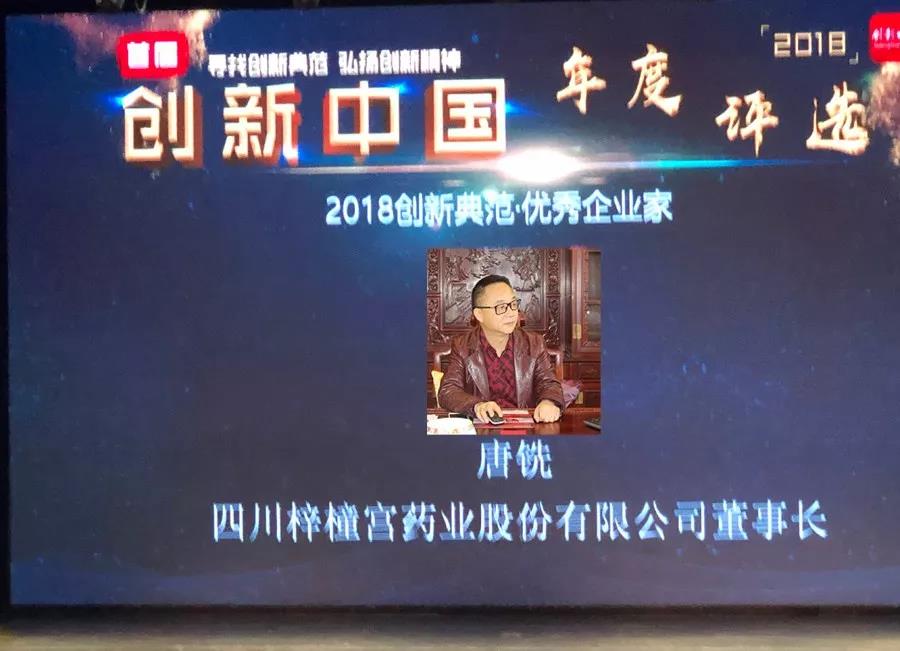 23 19-05獎(jiǎng)杯、證書、掌聲……5月20日,“創(chuàng)新中國(guó)·2018年度評(píng)選”頒獎(jiǎng)典禮在北京宋慶齡青少年科技文化交流中心隆重舉行。四川梓橦宮藥業(yè)股份有限公司董事長(zhǎng)唐銑博士榮獲“2018創(chuàng)新典范?優(yōu)秀企業(yè)家”稱號(hào)。